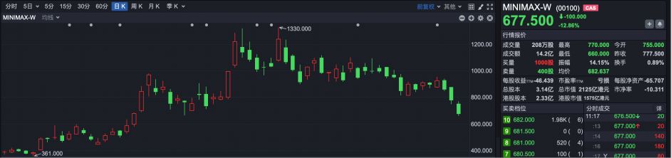 回顾今年初,智谱与MiniMax先后登陆港交所,凭借其纯AI大模型的稀缺性,迅速成为港股市场的绝对明星。MiniMax一度涨至1330港元,成为港股第一高价股;智谱随后也突破千元大关,市值超过百度、京东等知名企业。